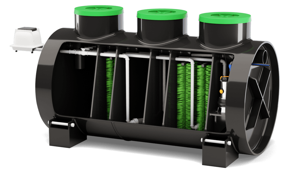 Очистка происходит в две стадии: сначала механическая фильтрация в септической камере, где оседают крупные частицы, а затем биологическая очистка с помощью активного ила. Такой подход гарантирует высокое качество очистки без использования химических реагентов.