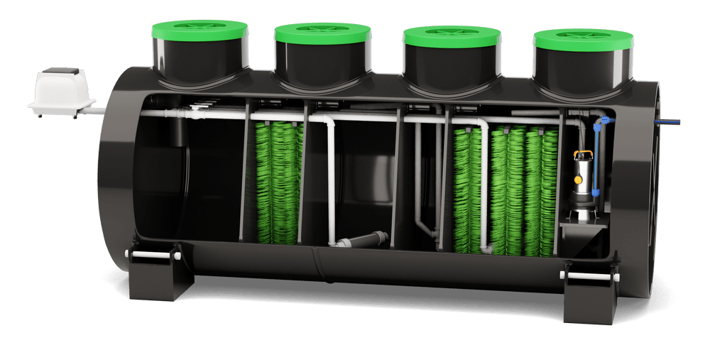 ✔ Механическая очистка происходит в септической камере, где осаждается песок и другие нерастворимые включения. Главной целью применения септической камеры является подготовка воды для дальнейшей очистки.