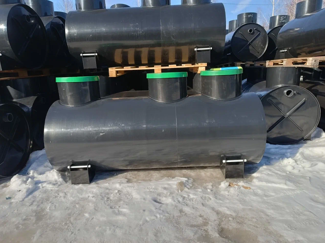 Септик представляет собой емкость с технологическими люками и дополнительными крышками, разделенную внутренними перегородками, образующие четыре секции.