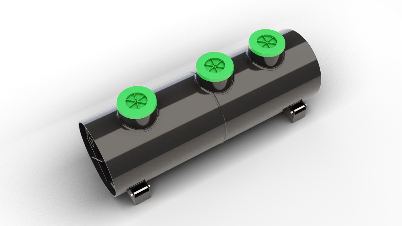 Септик представляет собой емкость с технологическими люками и дополнительными крышками, разделенную внутренними перегородками, образующие четыре секции.